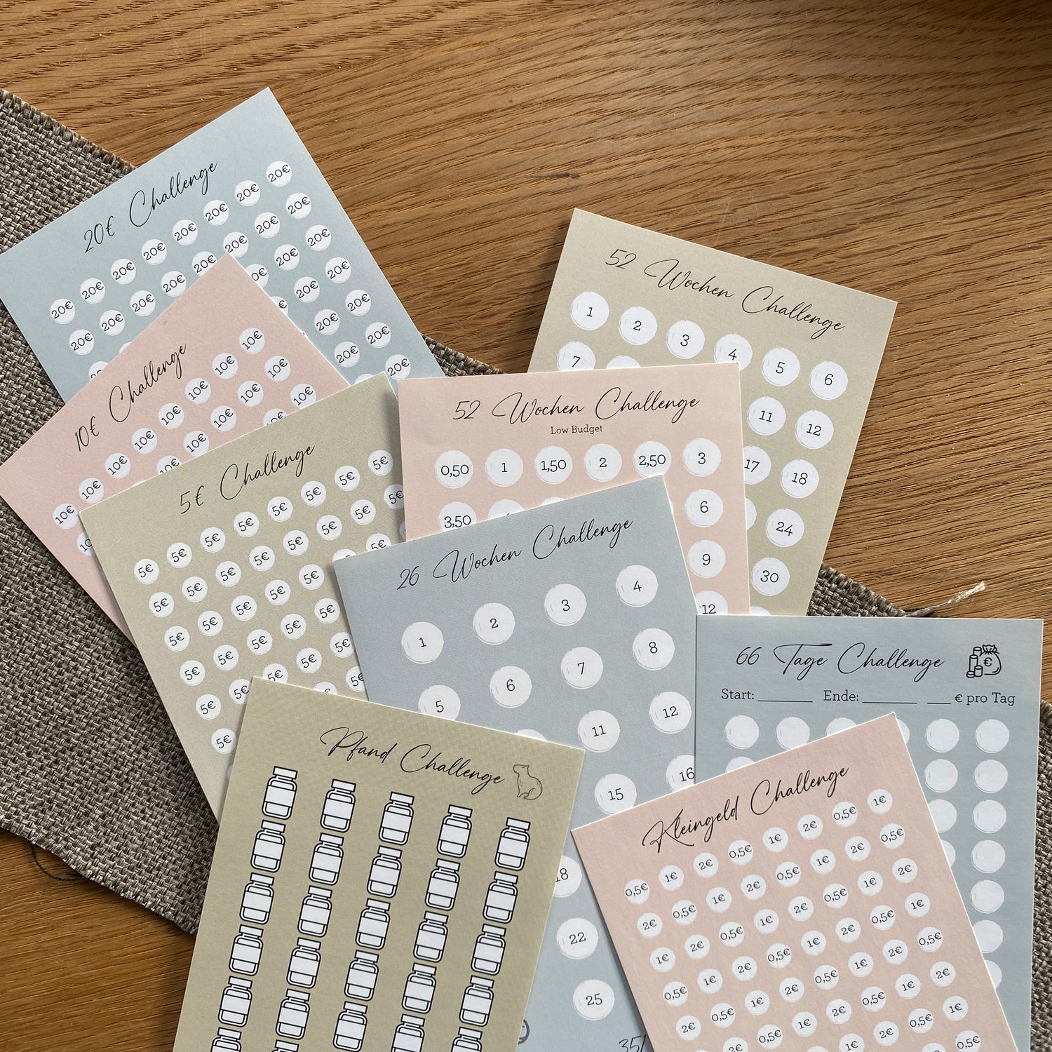Von 52-Wochen-Challenge, Kleingeld-Challenge, 66-Tage-Challenge bis hin zur 5€- und 10€-Challenge findest du hier alle beliebten und begehrten Sparchallenges im Sparschwein-Design made by @die.sparschweine. Auch ein Sparchallenge Set steht dir zur Verfügung. Schau doch bei Gelegenheit auch mal bei unseren Sparspielen vorbei.