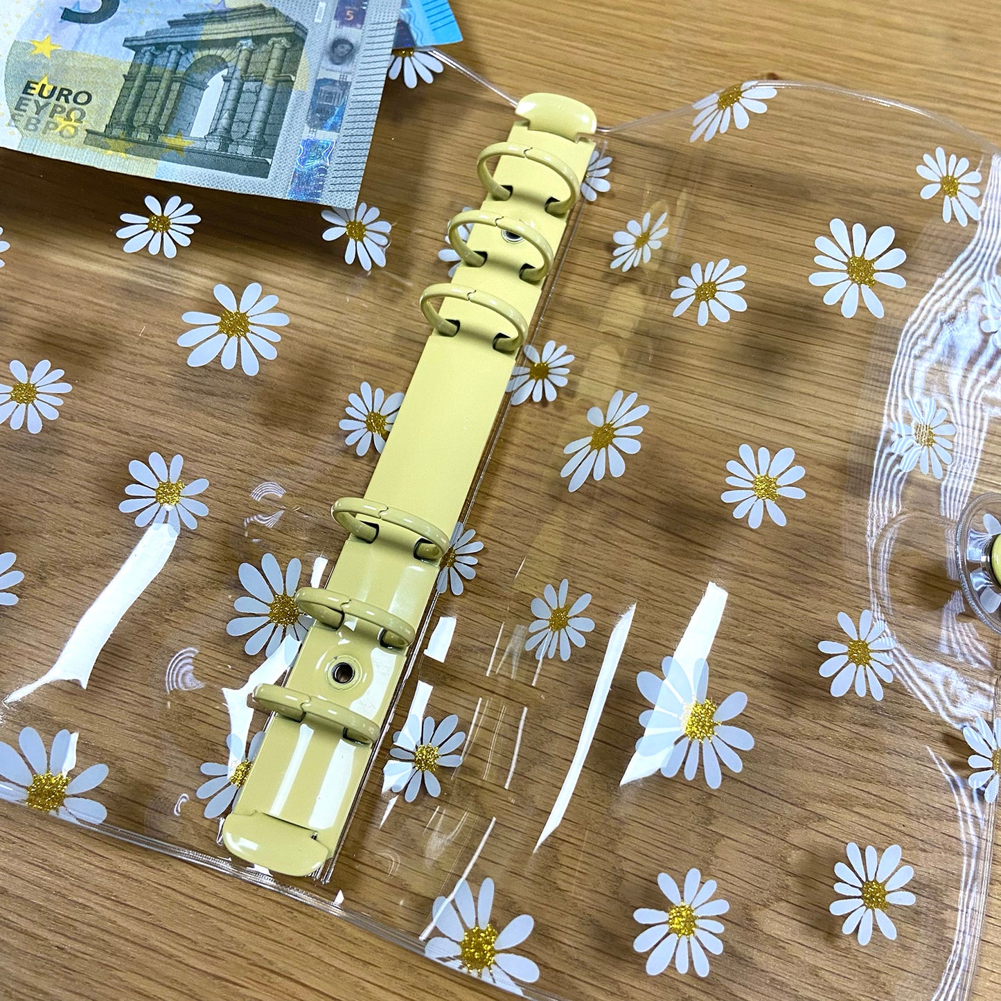 Klassisch und wunderschön mit kleinen, glitzernden Gänseblümchen. In unseren Blümchen Binder passen alle A6 Zip Umschläge perfekt hinein und er ist wie gemacht für dein Budget, deine Sparziele und Wünsche. Besonders für Sparspiele oder Sparchallenges ist er der perfekte Begleiter für die Umschlagmethde. Man sieht durch das transparente Material sofort, was sich im Binder befindet. Das ist sehr praktisch, wenn man beispielsweise mehr als einen Binder hat. So hat man schnell den richtigen Binder zur Hand und kann direkt loslegen. Die glitzernden Blümchen machen diesen Binder zu einem ganz besonderen Hingucker und er eignet sich auch dadurch prima als Geschenk für deine Freunde oder Liebsten.